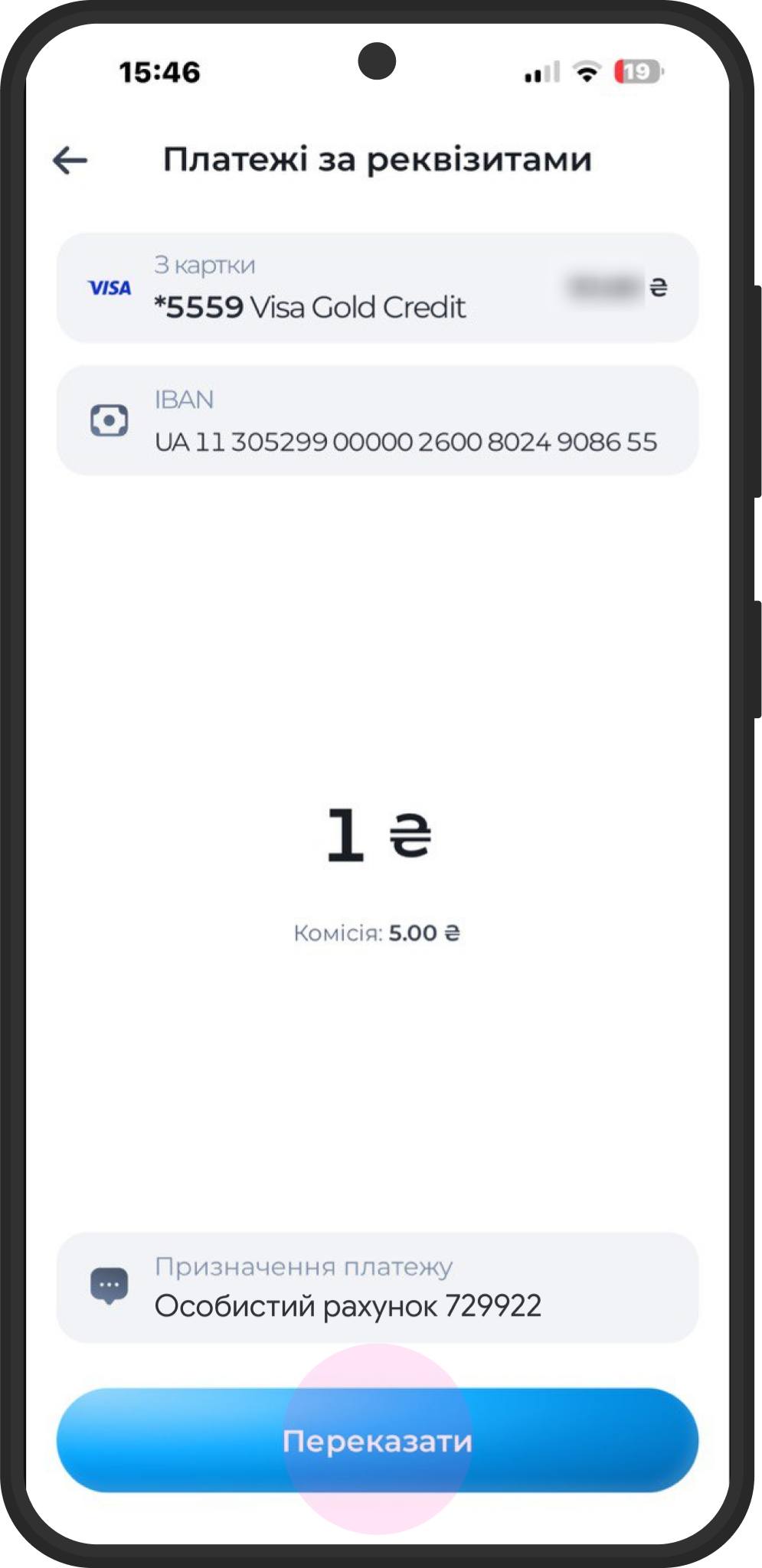 Крок 3. Введіть реквізити отримувача (IBAN)