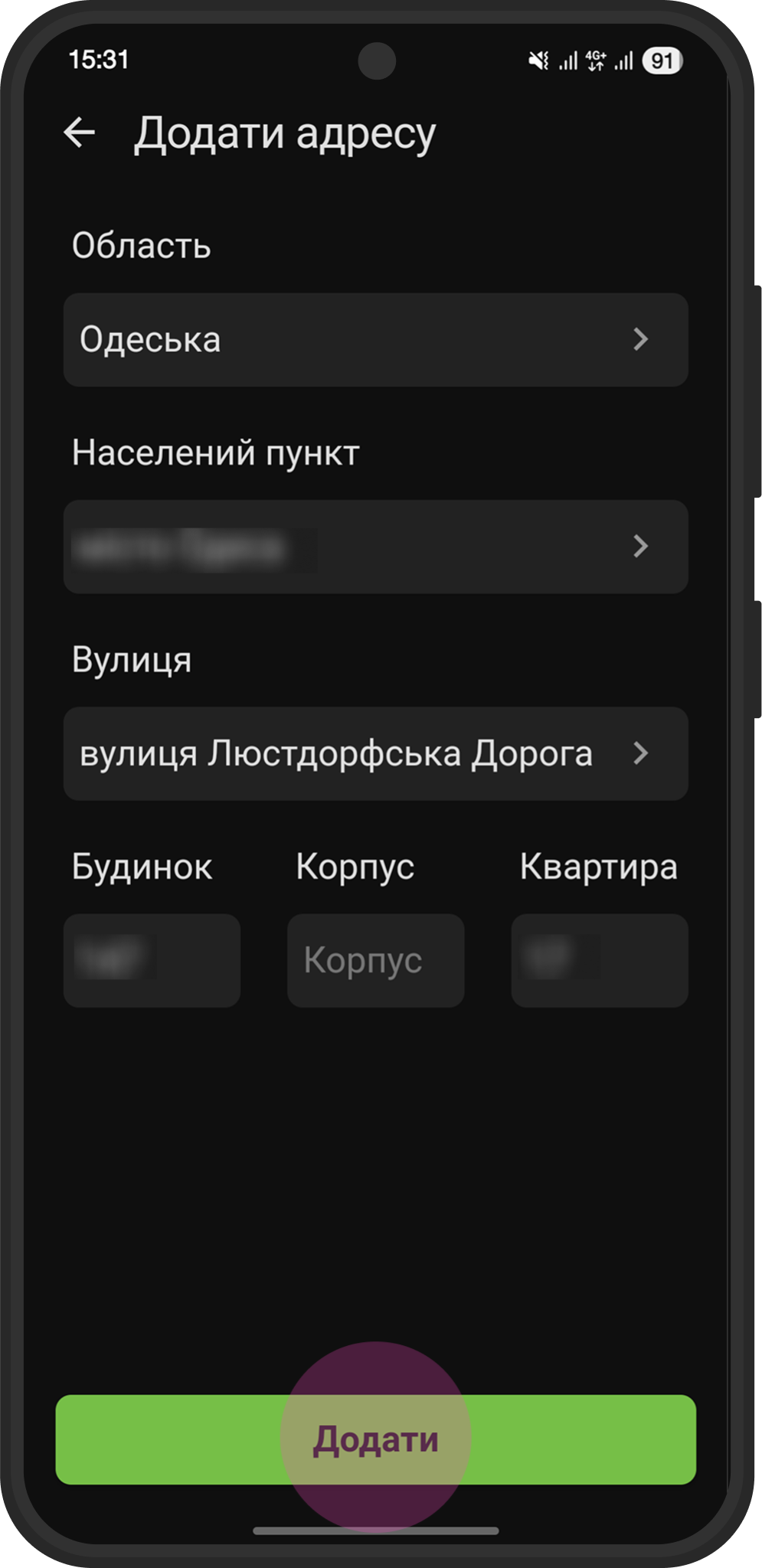 - Заполните номер дома и корпуса (при необходимости)