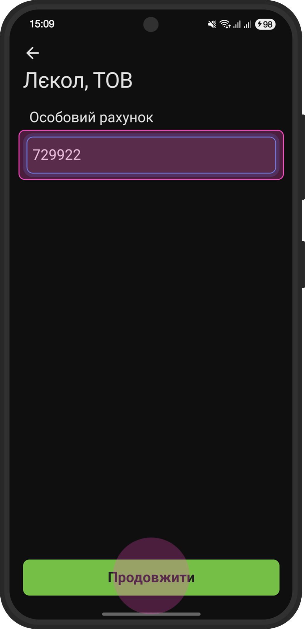Шаг 5: Введите лицевой счет